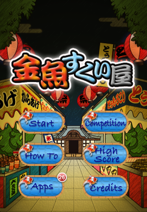 Categoly:Game Enjoy the festival in Japan. [How To Play] 1.Touch a "Poi" which is a special to put it in the water. 2.Drag the "Poi" to move. 3.To scoop the Goldfish, stop touching the screen. 4.You can sell the Goldfishes you're got at "SHOP". 5.Money you can get from selling Goldfishes can be used to buy a new "Poi", to strengther, or to unlock the hidden fish. 6.You'll get one "Poi" per hour in offline, or per 5min in online. 7.In the bottom of the screen, ther is a bar shows you the staying power of the "Poi". 8.In Competition mode, you can compete how many Goldfish you'd get with 5"Poi" in online ranking. |